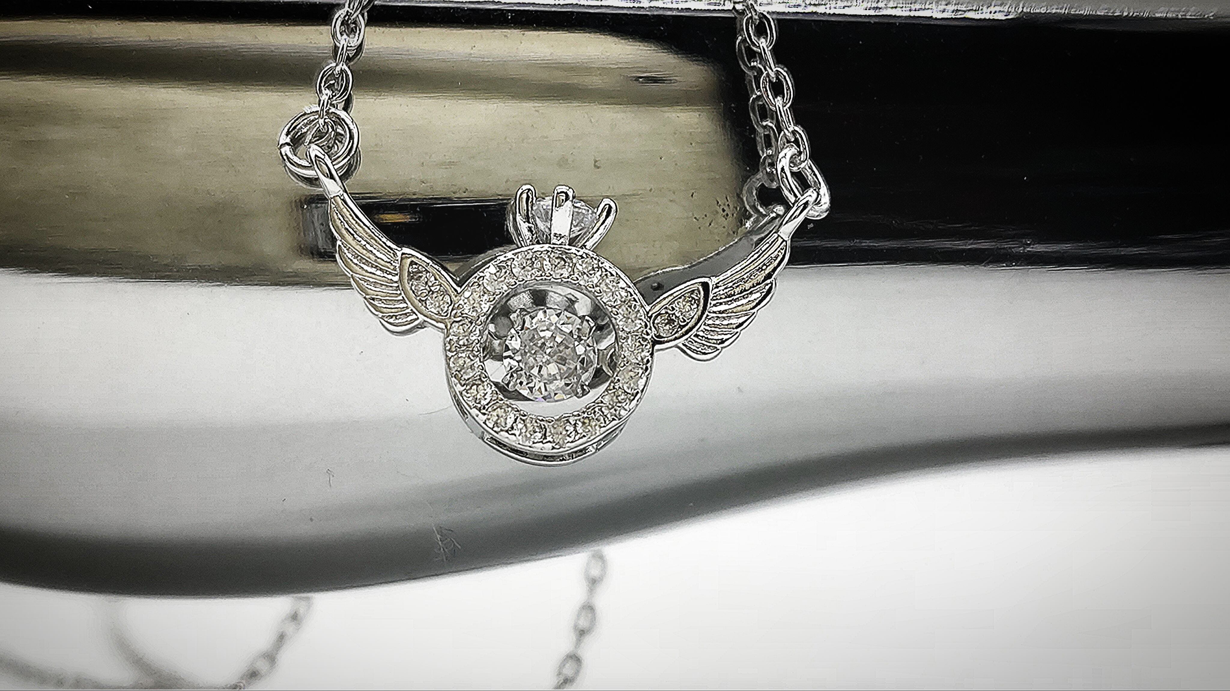 Flickering Angelsネックレス〜天使のゆらめき〜は、美しく輝く天使の翼をデザインしたネックレスです。繊細な細工で丁寧に作られています。煌めくCZダイアが入ることで、より一層輝きを増しています。